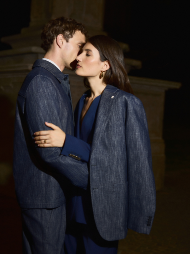 Una proposta che reinventa il concetto di completo, con due fitting principali – slim regular e light over – che possono essere facilmente abbinati tra loro, rispondendo così a esigenze diverse, ma sempre con un dettaglio distintivo o un accento di colore. Ogni capo è progettato per essere indossato come parte di un completo, ma anche per essere mixato liberamente, dando spazio a uno stile unico e personale.