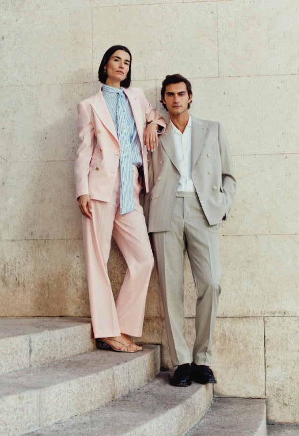 Manuel Ritz reinterpreta l'arte sartoriale con una prospettiva fresca e quotidiana: indossare il tailleur come simbolo di libertà, eleganza e positività.